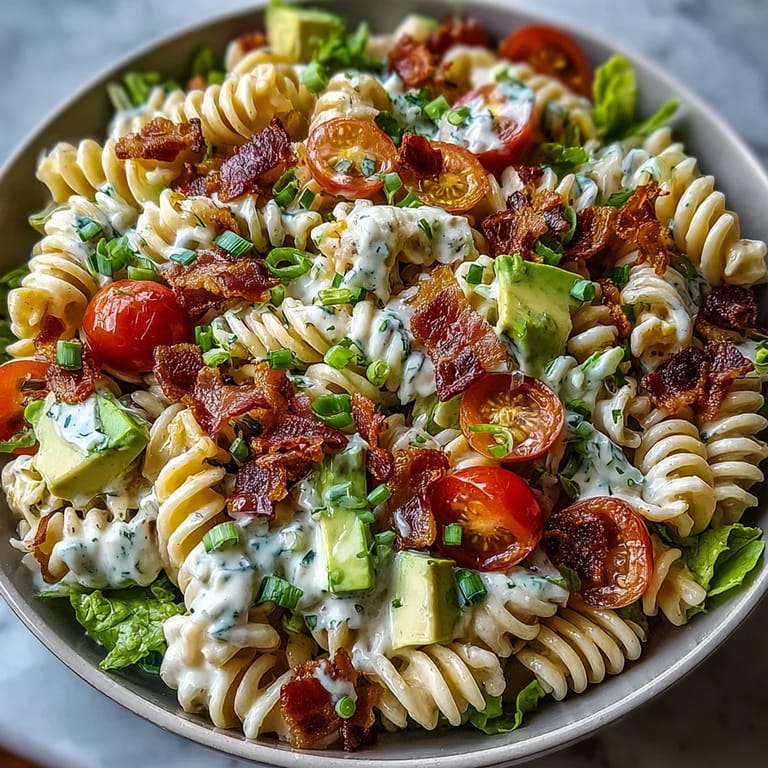 Save BLT Pasta Salad with Bacon and Avocado is a fresh and hearty twist on the beloved classic BLT sandwich. Combining crispy bacon, ripe avocado, juicy cherry tomatoes, and tender romaine lettuce with quick-cooking pasta, this salad offers a satisfying blend of textures and flavors. Tossed in a creamy lemon-mayo dressing with a hint of garlic and Dijon mustard, it’s perfect as a main dish or a side for summer picnics, casual lunches, or light dinners.