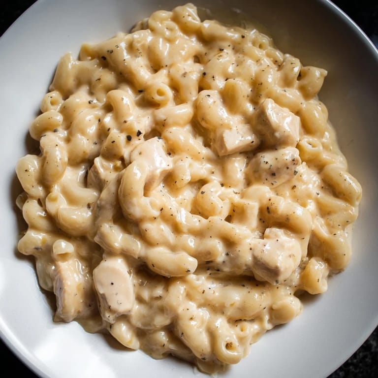 Save There's something about a Tuesday night when the bank account is looking thin and the fridge feels empty that makes you get creative. I'd thrown together canned chicken and boxed pasta more times than I could count, but one evening I decided to actually make a proper sauce instead of just dumping everything together. That first batch of creamy, cheesy comfort surprised me—turns out a few extra minutes and some basic pantry staples transform a survival meal into something you'd genuinely want to eat.