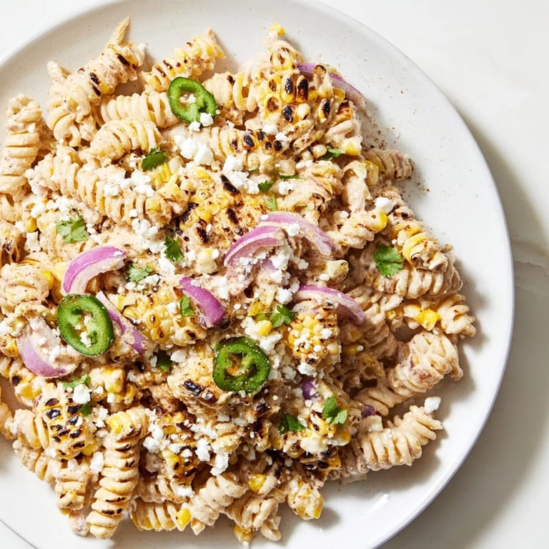 Save One summer evening, my neighbor brought over a cup of charred corn topped with lime and spice, and I couldn't stop thinking about it for days. I started tossing those flavors into everything until this pasta salad happened almost by accident. The creamy tang, the smokiness, the little bursts of heat—it all just clicked. Now it shows up at every backyard gathering, and people always ask if I brought it. I always do.