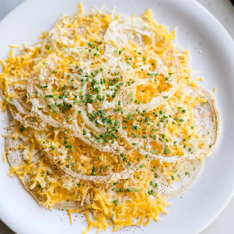 Save I discovered these by accident on a Tuesday evening when I had leftover cheese and a bag of onions staring at me from the counter. My air fryer had become my new favorite kitchen gadget, and I was experimenting with everything I could fit inside it. Slicing those onions thin and layering them with melted cheese felt like I was creating something between a chip and a crisp, and when they came out golden and shattering under my teeth, I knew I'd stumbled onto something special. Now they're what I reach for when I need that satisfying crunch without the guilt.