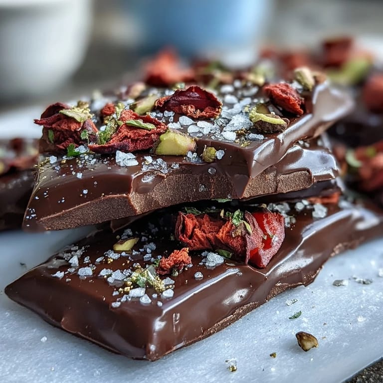 Save I stumbled upon this recipe during a random browse through a luxury food magazine in a coffee shop, and something about the combination of dark chocolate with rose petals and pistachios just clicked. The image showed this gleaming, jewel-like bark scattered with gold leaf, and I remember thinking it looked almost too beautiful to eat. That afternoon, I decided to attempt it without much fuss, and what emerged from my kitchen was genuinely restaurant-worthy. Now whenever I make it, that same little thrill of creating something so elegant in just thirty minutes never gets old.
