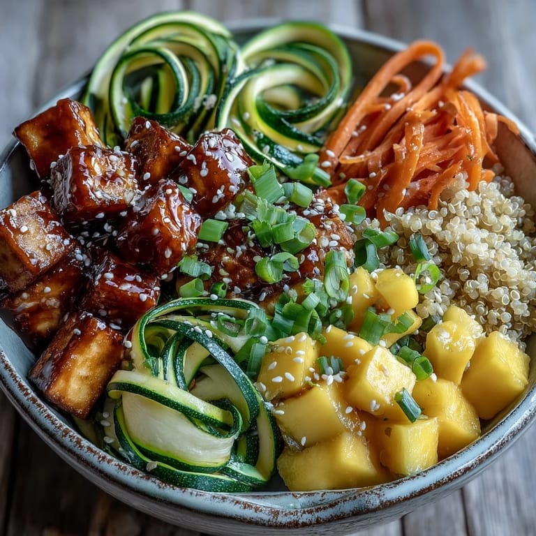 Save I discovered this bowl on a Tuesday afternoon when my fridge looked depressingly bare except for some sad tofu and half a mango. Instead of ordering takeout, I decided to play around with what I had, and somehow ended up with this glowing, colorful dish that tasted like I'd actually put effort into dinner. The combination of crispy tofu, bright mango, and that glossy teriyaki sauce made me realize how easy it is to feel like you're eating at a restaurant when you're really just assembling smart ingredients. Now it's become my go-to when I want something that feels indulgent but doesn't require hours of cooking.