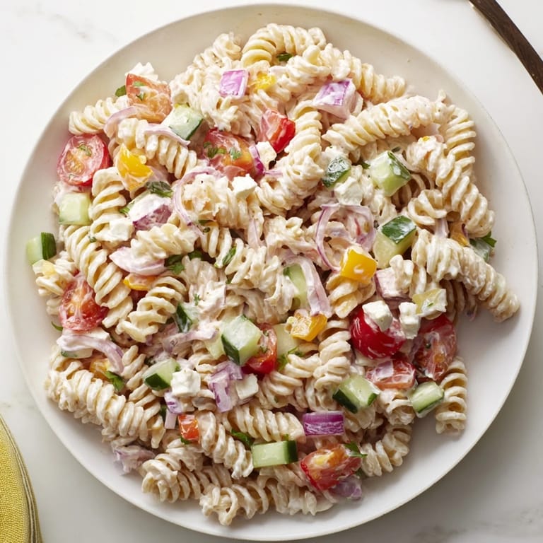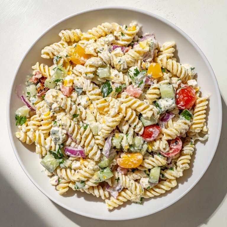 This pasta salad has become a holiday staple in my family, bringing everyone together with its creamy and refreshing flavors.