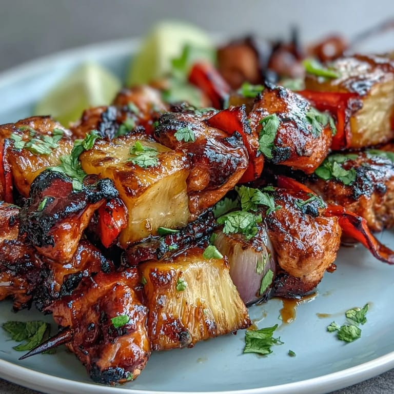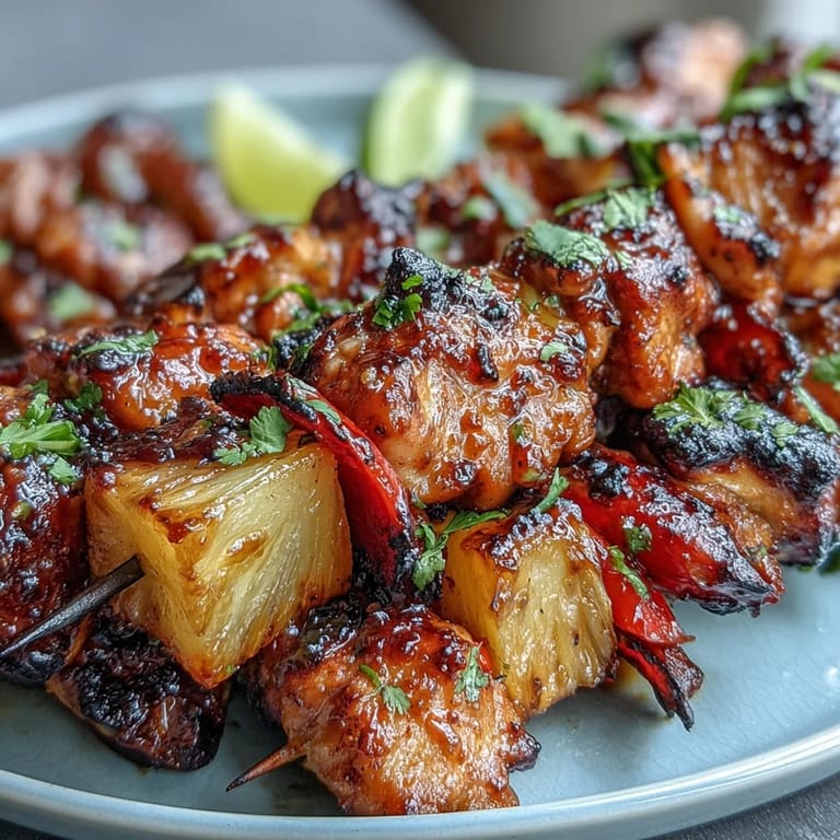 Save The sizzle and smoky aroma that wafted across the backyard the first time I made grilled pineapple chicken skewers still makes me smile. I was measuring pineapple juice, laughing at my cousin's bold claims about his grilling expertise, when the honey accidentally dripped onto the cutting board. That sticky sweetness ended up flavoring the marinade and the air, both. I remember the anticipation, everyone gathered around, waiting for the weather to cooperate and the grill to heat up.