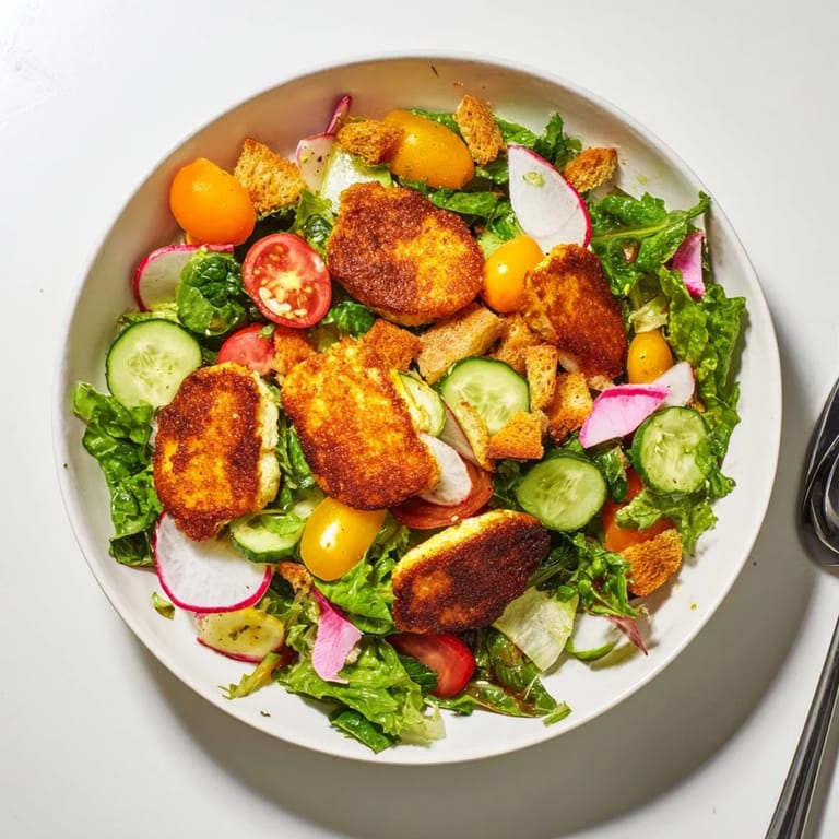 This salad stands on its own as a light lunch, especially alongside some hummus and warm pita. For dinner, I like to pair it with simply grilled fish or roasted chicken. The bright, acidic flavors cut through rich main dishes perfectly, and the halloumi provides enough protein that nobody leaves the table hungry.