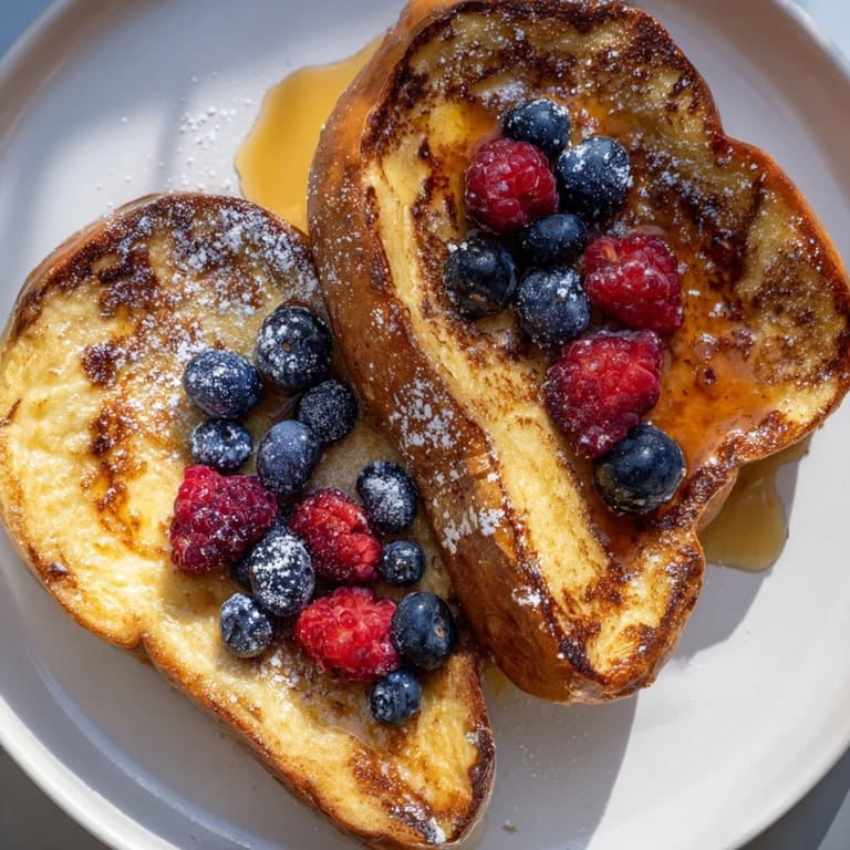 Brioche and challah are ideal because they're enriched with eggs and butter, so they have a tender crumb that soaks up custard while staying structurally sound. Texas toast is thicker than standard sandwich bread and gives you more surface area for that caramelized crust. Regular sliced bread will work in a pinch, but it's more fragile and you'll lose some to the dipping process. The stale-versus-fresh question is real—I learned this the hard way after making a batch with fresh bread from the bakery and watching it disintegrate in the pan. Now I buy bread the day before or leave it out on the counter overnight, and the difference is stark.