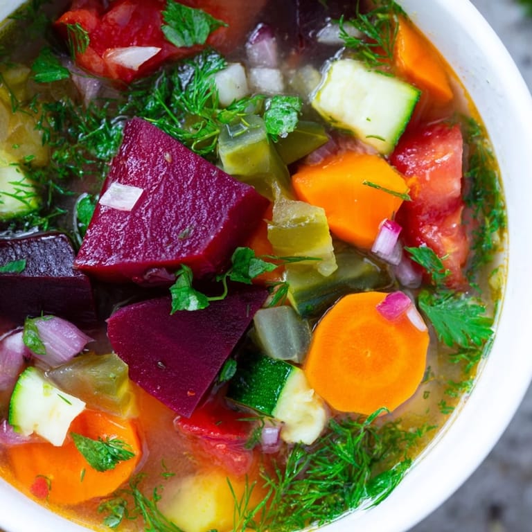 Save The first time I made this rainbow soup, I stood back and just stared at the pot. All those colors—ruby red beets, orange carrots, emerald zucchini, bright red tomatoes—dancing together in the broth. It felt like art you could eat, and my kitchen smelled like a farmers market in full bloom. My roommate walked in, took one look, and asked if we were having a party. That is the thing about this soup—it makes a regular Tuesday feel like a celebration.