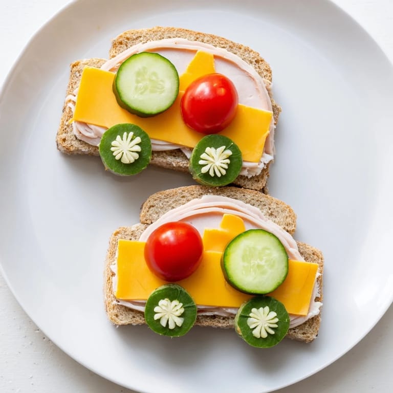 - Sandwich Base: 4 slices whole wheat sandwich bread, 2 tbsp cream cheese or hummus, 2 slices cheddar cheese, 2 slices deli turkey or vegetarian alternative