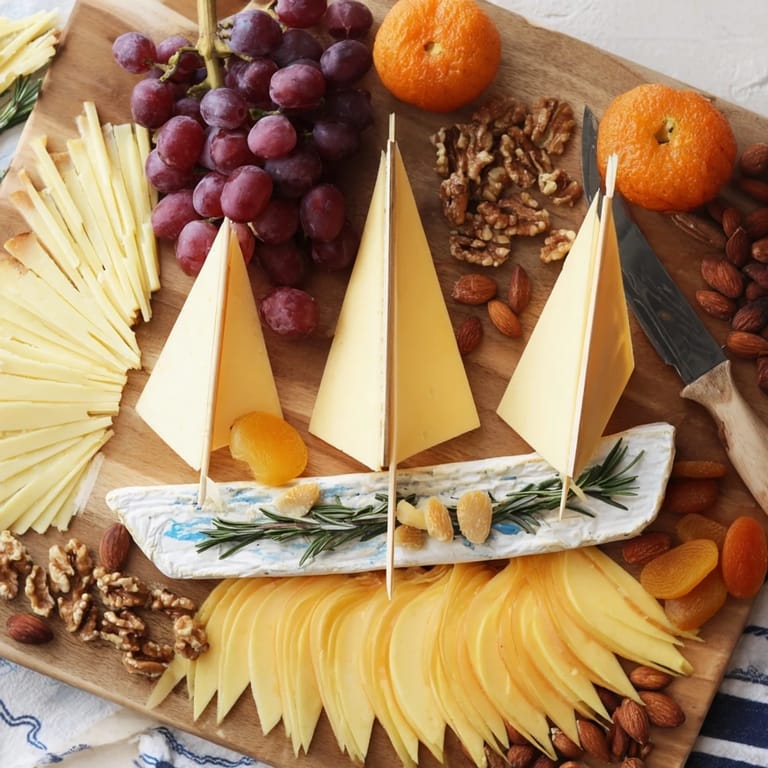 Ensure the cheeses are sliced evenly to maintain the sailboat shape and for easy serving. Chill the platter briefly before serving if preparing in advance to keep the cheeses fresh. When inserting the sails, gently place skewers to avoid splitting the softer cheeses.