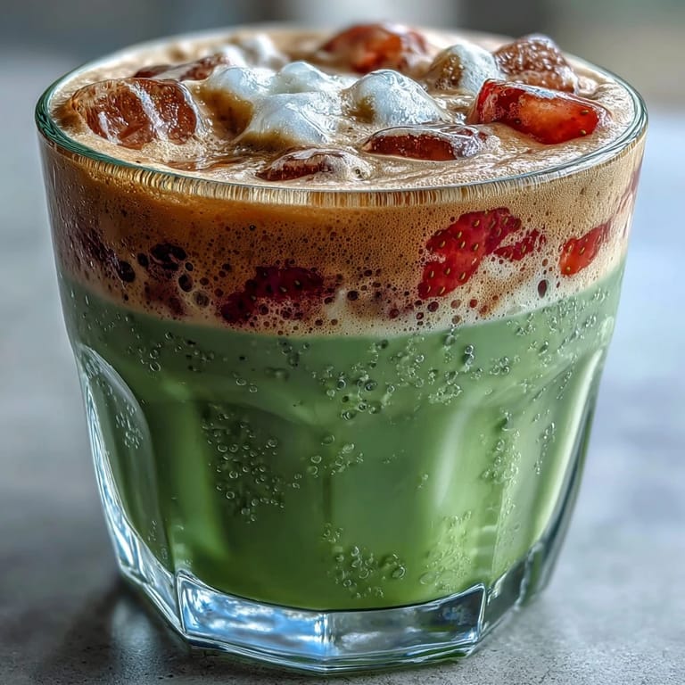 Save There's something about layered drinks that makes you feel like you're sitting in a fancy café, except you're actually in your kitchen in yesterday's sweatshirt. I discovered this strawberry matcha combination on a random Tuesday afternoon when I had fresh strawberries about to turn soft and a tin of matcha I'd been meaning to use for something other than the usual latte. The moment I whisked that green powder with hot water and watched it bloom into a vibrant froth, I knew this wasn't going to be boring. Adding oat milk foam on top felt like the final piece of a puzzle I didn't know I was solving.