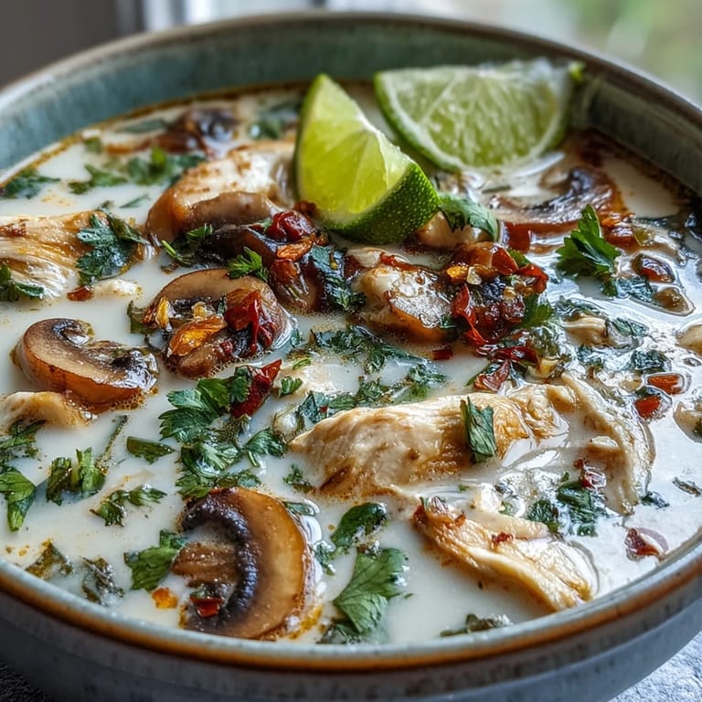 Save My first bowl of Tom Kha Gai arrived at a crowded Bangkok market stall on a sweltering afternoon, and I watched the vendor stir a massive pot with the kind of practiced ease that comes from making the same thing a thousand times. The steam rising from that golden broth carried lemongrass and coconut in equal measure, and one spoonful made me understand why this soup had survived centuries of Thai cooking tradition. Years later, I recreated it in my own kitchen on a rainy evening, and that same magic happened again, except this time I could control exactly how much lime and chili went into my bowl. Now it's become my go-to when I want something that feels both luxurious and deeply comforting.