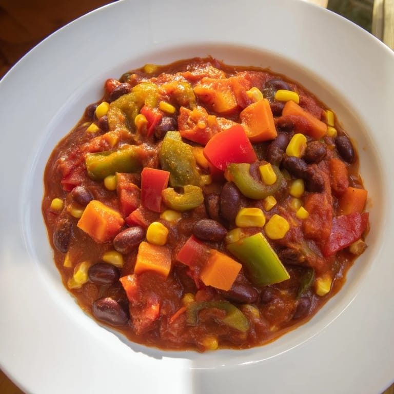 Save A hearty, flavorful chili packed with beans, corn, tomatoes, and warming spices. Perfect for a filling, budget-friendly, vegan and vegetarian meal.