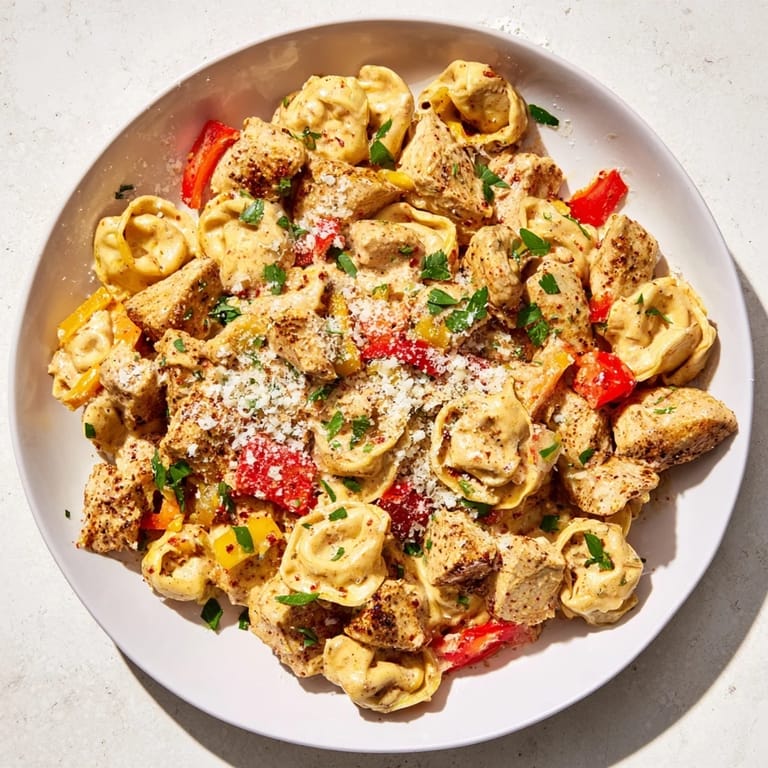 Save A vibrant and flavorful pasta dish featuring tender chicken, cheesy tortellini, and a creamy Cajun garlic Parmesan sauce. Perfect for a quick weeknight meal with a spicy kick.
